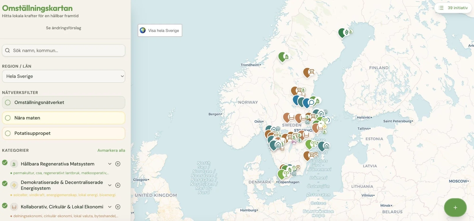 Vi har en ny karta där ni kan registrera ert lokala omställningsinitiativ! För att synliggöra omställningsrörelsen i Sverige, för att vi lättare ska hitta varandra, för att fler ska hitta till oss.